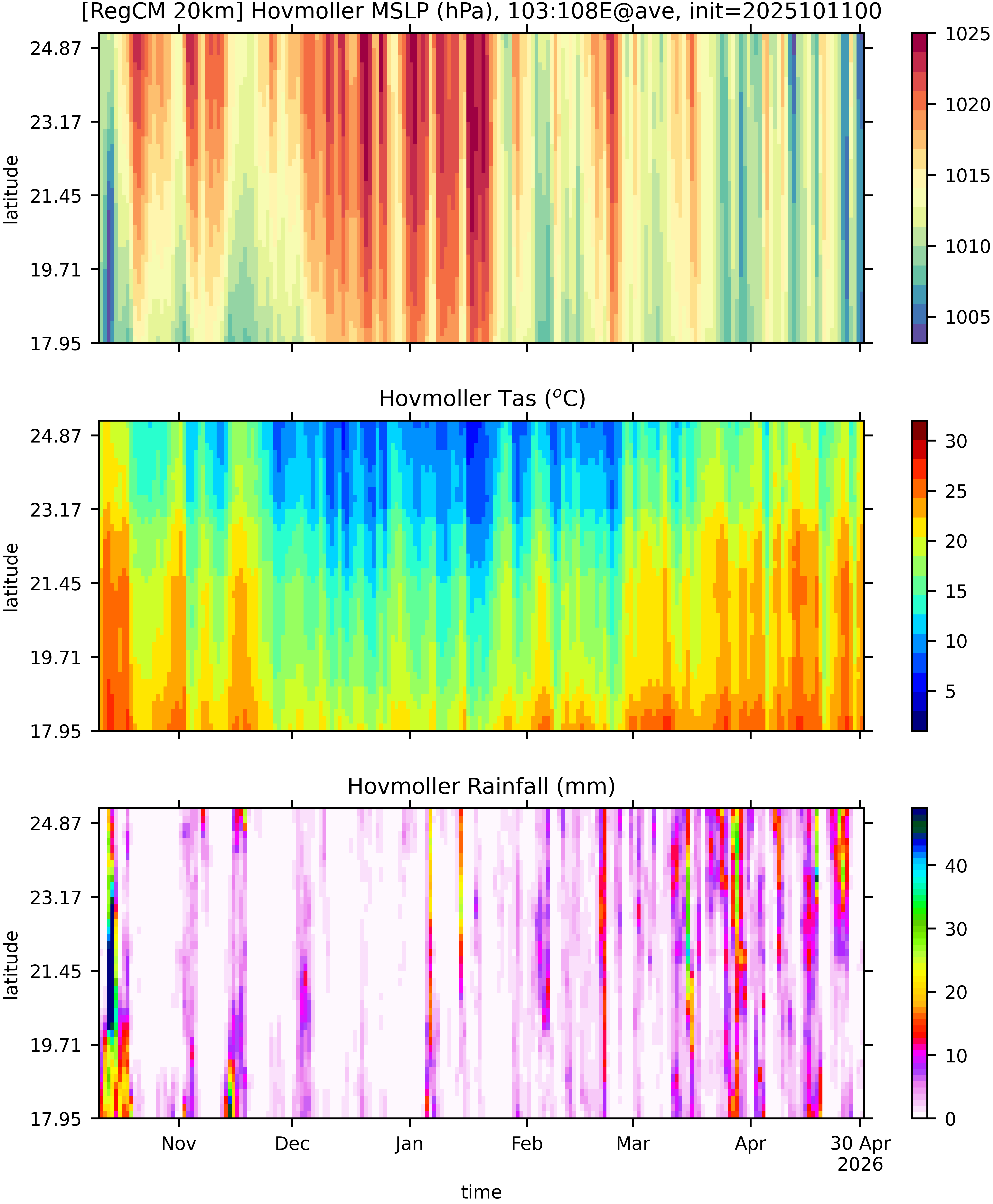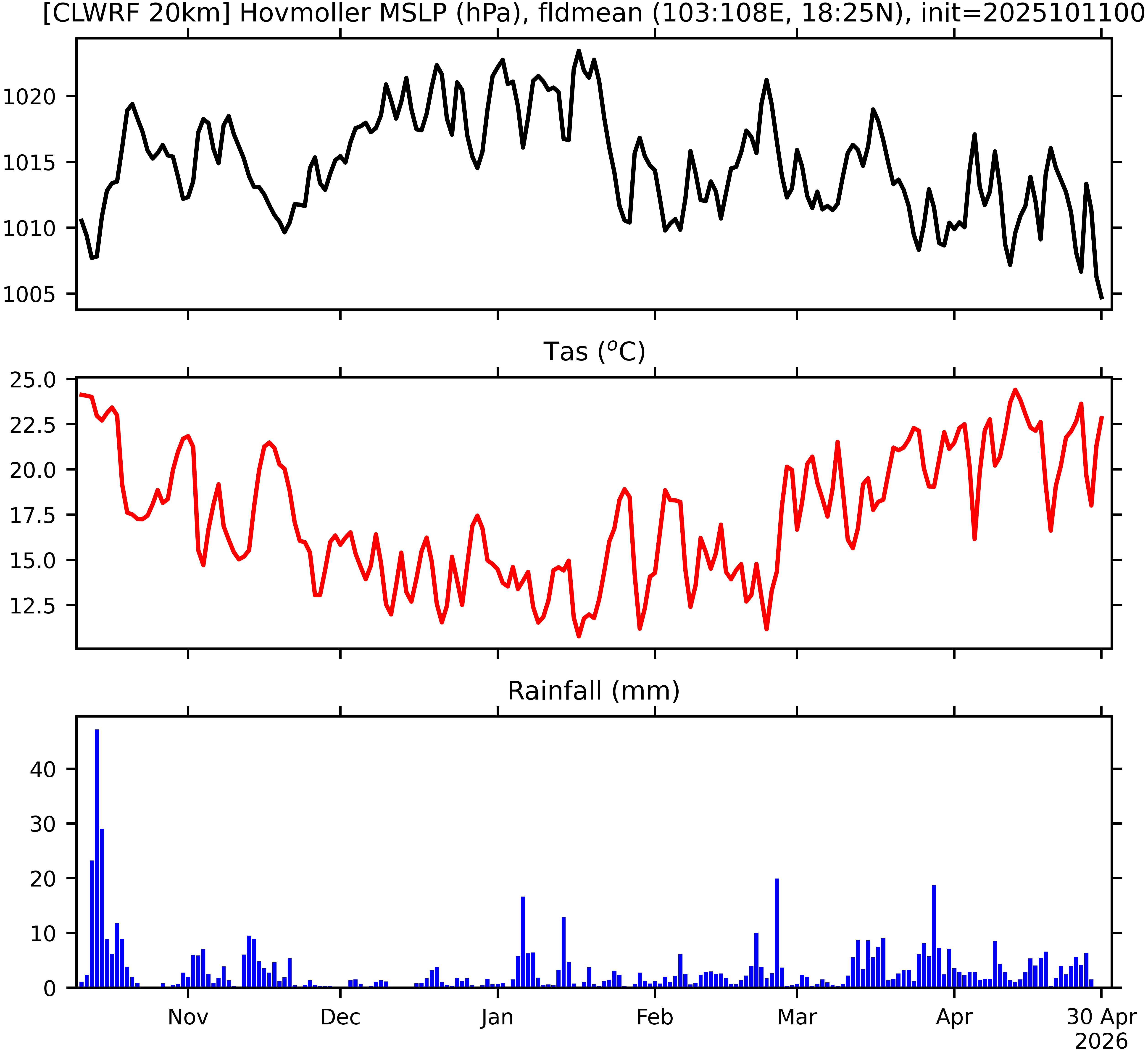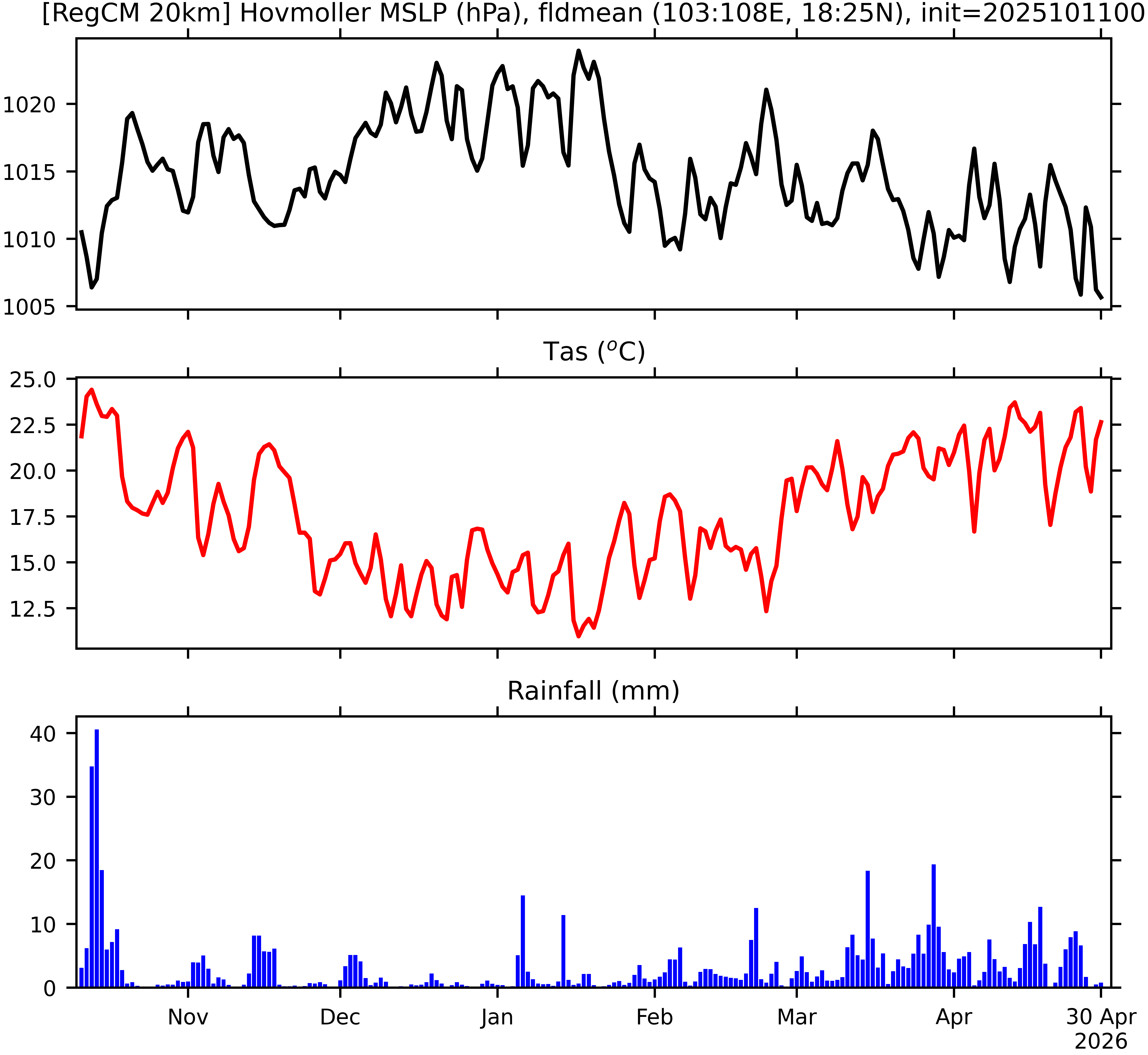 Tiến trình thời gian giá trị trung bình khu vực của khí áp, nhiệt độ và lượng mưa