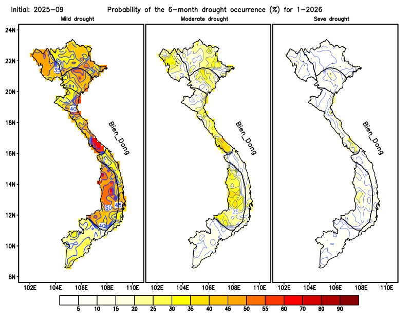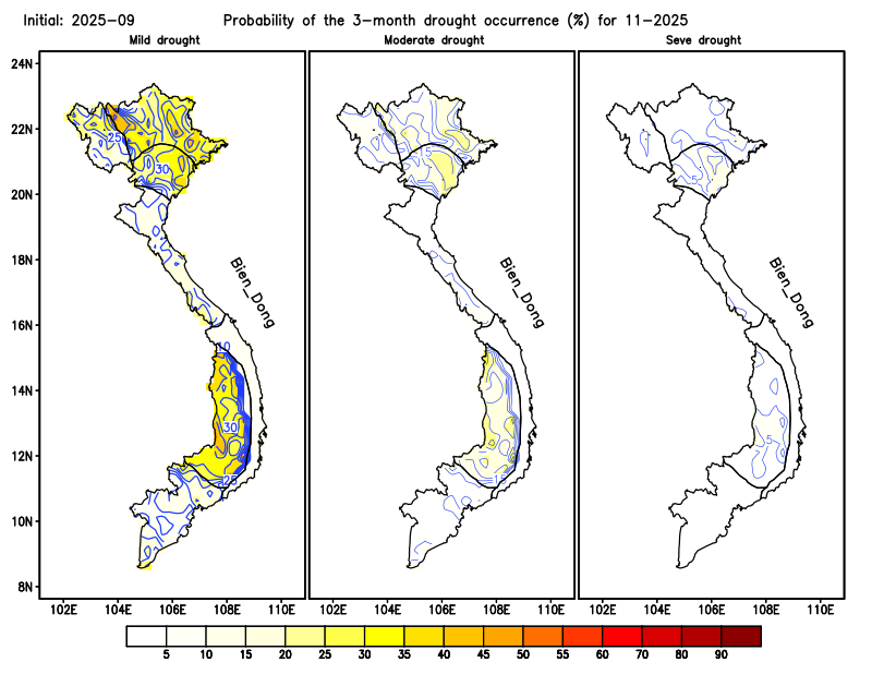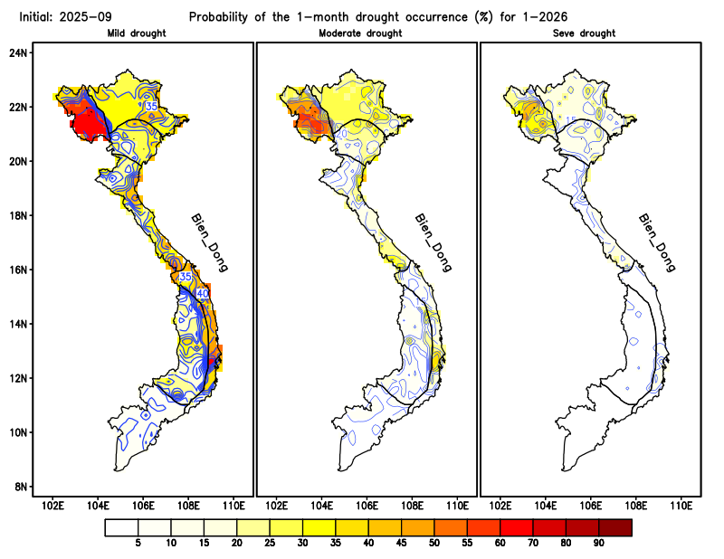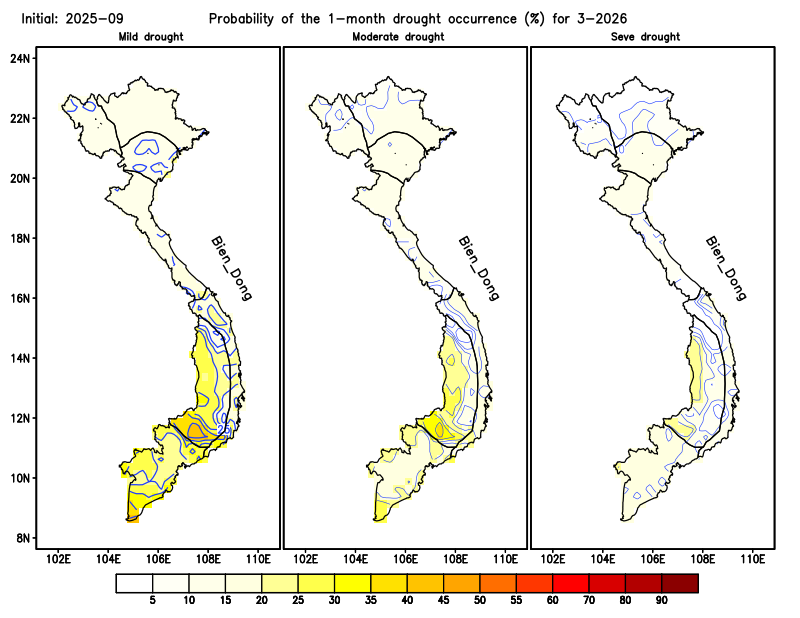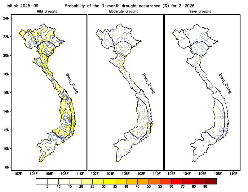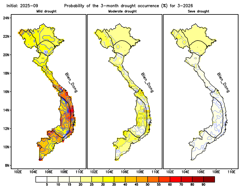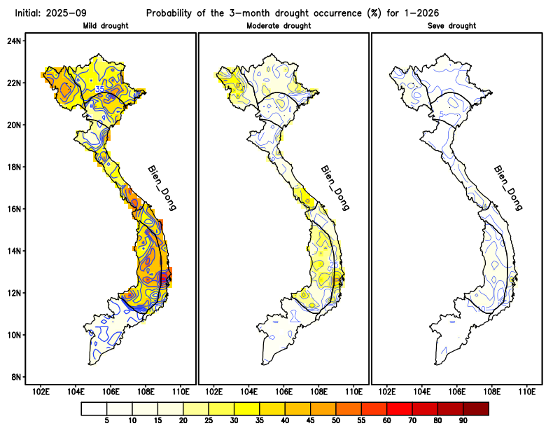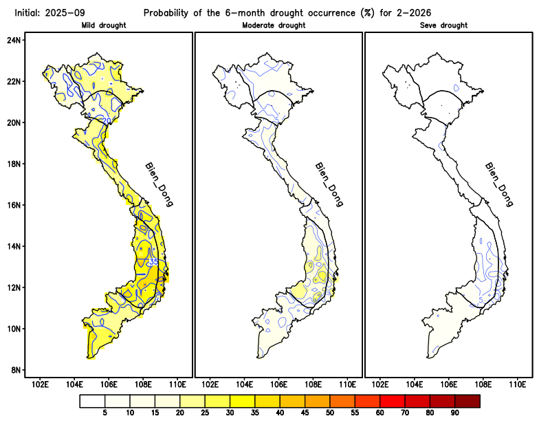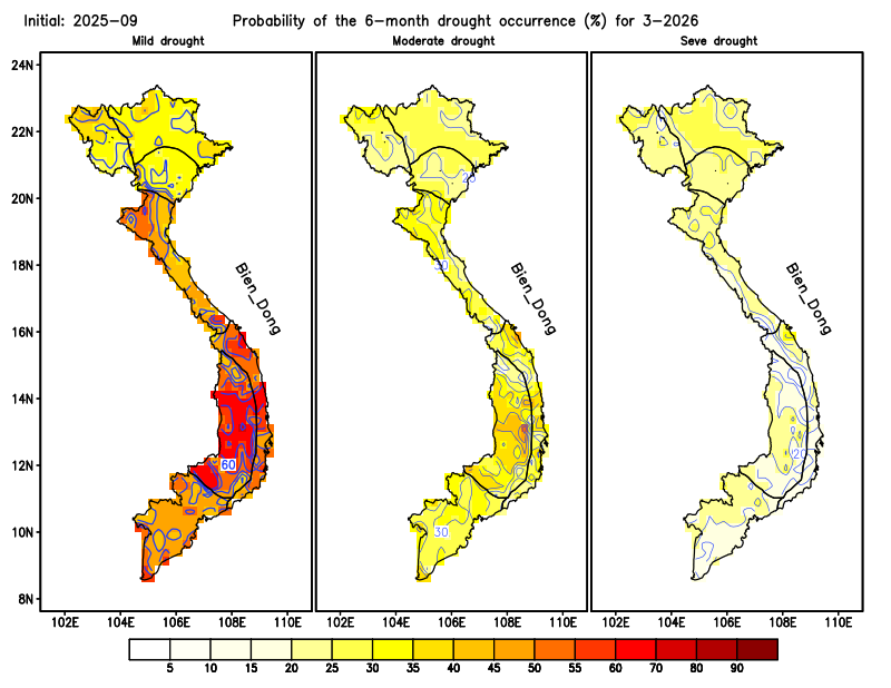 Dự báo xác suất xuất hiện hạn theo các cấp và quy mô thời gian