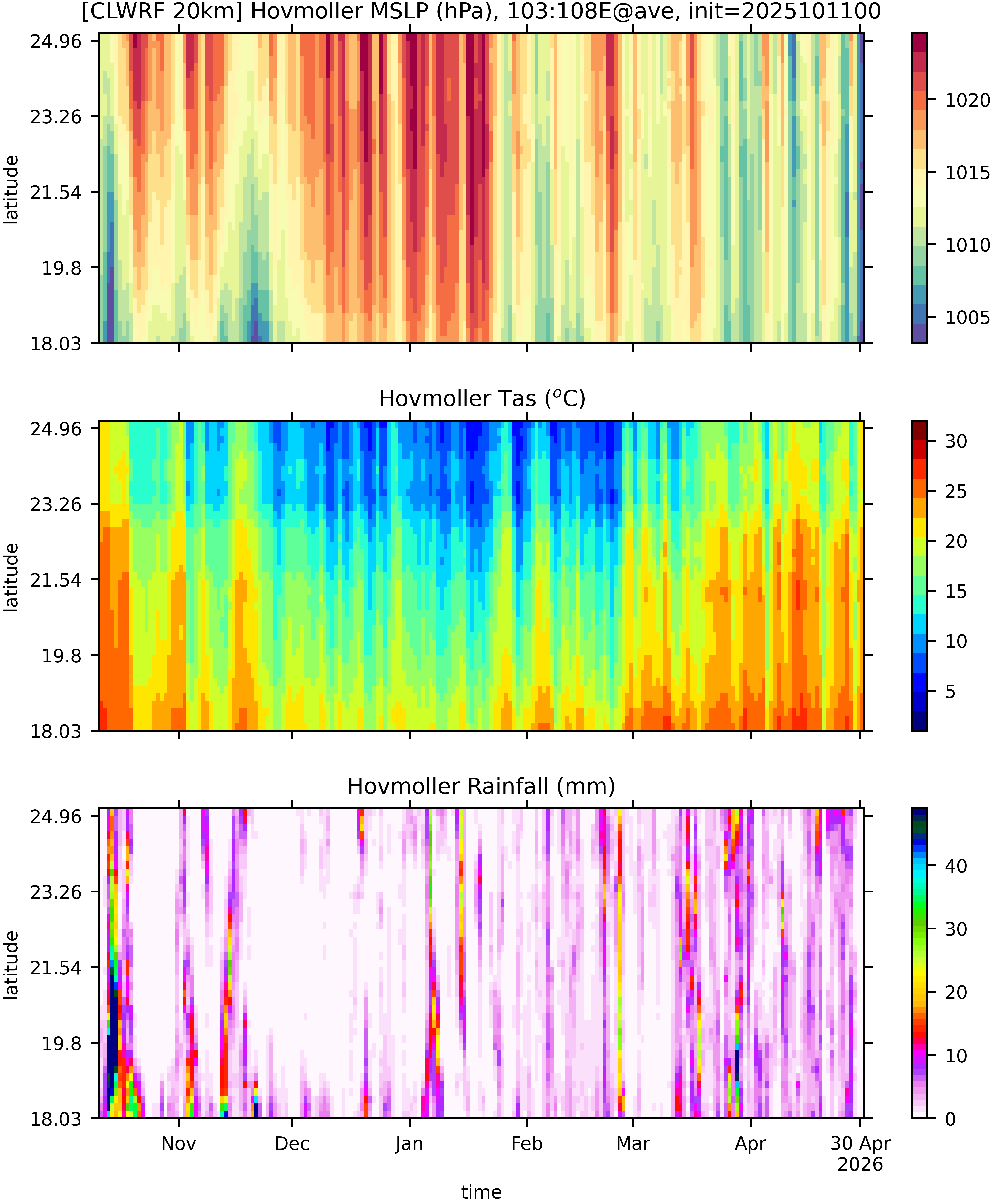 Giản đồ Hovmöller mô tả các sóng khí áp, sóng nhiệt độ và lượng mưa