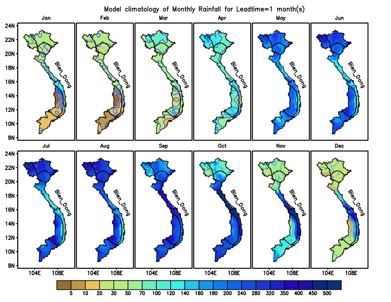 Trung bình khí hậu tổng lượng mưa quan trắc các tháng trong năm