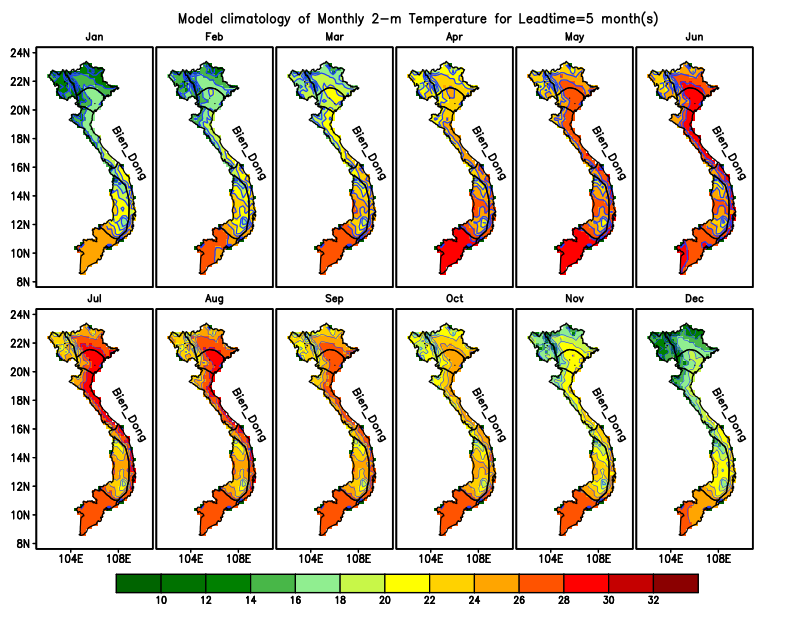 Trung bình khí hậu nhiệt độ quan trắc các tháng trong năm
