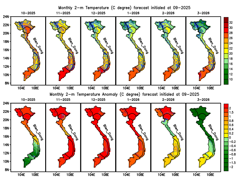 Nhiệt độ trung bình tháng và dị thường nhiệt độ trung bình tháng